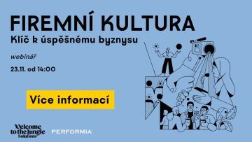 Spolu se společností Welcome to the Jungle jsme ve čtvrtek 23. listopadu odvysílali skvělý webinář na téma "FIREMNÍ KULTURA: Klíč k úspěšnému byznysu".