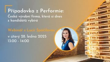 Na konci ledna se také můžete těšit na další z našich webinářů. Jeho tématem bude PŘÍPADOVKA Z PERFORMIE: Česká výrobní firma, která si dnes z kandidátů vybírá. Proběhne 28. ledna 2025, ale přihlašovat se na něj můžete už teď.