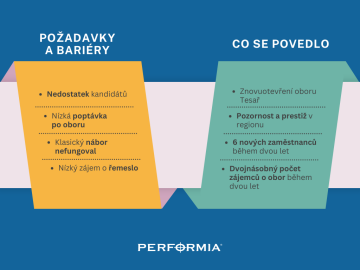 Do toho se měnila technologie, rostly požadavky na kvalifikaci a nestačilo hledat jen „šikovné ruce“. Firma potřebovala strojníky CNC, projektanty nebo statiky. Majitel Tomáš Nemrava tehdy věděl, že bez uceleného systému náboru a práce s lidmi to nepůjde, a tak absolvoval seminář Jak vytvořit a udržet skvělý tým od společnosti Performia.