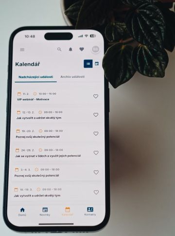 V přehledném kalendáři můžete snadno najít termíny VIP webinářů, VIP brunchů i dalších událostí. A co je nejlepší? Na jakoukoli akci se můžete rovnou přihlásit přímo z aplikace.