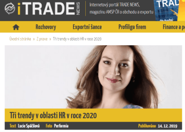 Přečtěte si článek Lucie Spáčilové, která se tentokrát zaměřila na trendy v oblasti HR v roce 2020. Celý článek si můžete přečíst na www.itradenews.cz