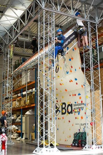 Lezecký trenažér pto nové techniky mají přímo v prostorech firmy.