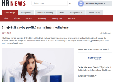 13.11.2018 - Když jsme chytří, pak nás chyby, které udělali jiní, mohou výrazně posunout. A proto vám přinášíme pohled do zákulisí odborníků na výběr a hodnocení zaměstnanců. I oni dělají chyby, před kterými se snaží varovat české firmy.