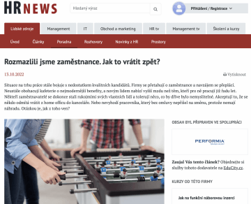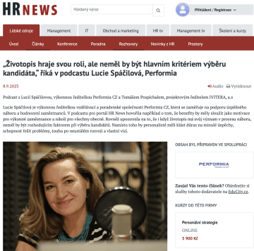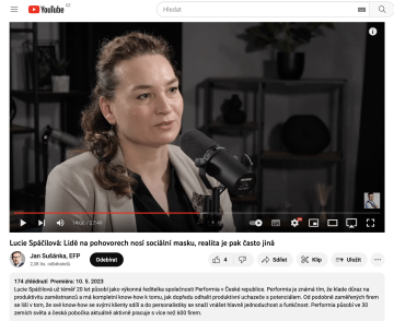 8.9.2023 Podcast s Lucií Spáčilovou, výkonnou ředitelkou Performia CZ a Tomášem Pospíchalem, projektovým ředitelem IVITERA, a.s. V podcastu pro portál HR News mluvili například o tom, že benefity by měly sloužit jako motivace pro výkonné zaměstnance a nikoli pro všechny obecně. Rovněž upozornila na to, že i když životopis má svůj význam v procesu náboru, neměl by být rozhodujícím faktorem při výběru kandidátů. Namísto toho by personalisté měli klást důraz na minulé úspěchy, schopnost řešit problémy, touhu po neustálém rozvoji a vlastní vizi.