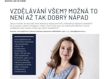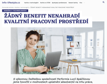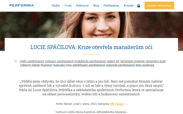 24.8.2021 - „Věděla jsem vždycky, že chci dělat něco s lidmi a pro lidi. Baví mě pomáhat firmám nabírat správné, nadšené lidi a vytvářet kulturu, v níž se lidé a týmy rozvíjejí, a práce jim dává smysl,“ řekla mi Lucie Spáčilová, ředitelka a zakladatelka společnosti Performia, která se specializuje na oblast personalistiky, vedení lidí a hodnocení zaměstnanců.
