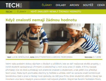 1.9.2015 - K podporovatelům TECH EDU se připojila také společnost Performia Česká republika, jejíž výkonné ředitelky a spoluzakladatelky Lucie Spáčilové jsme se při té příležitosti zeptali na několik otázek.